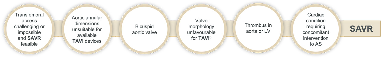 - The Heart Team recommendation should be discussed with the patient, who can then make an informed treatment decision between the option of TAVI or surgical aortic valve replacement (SAVR)1