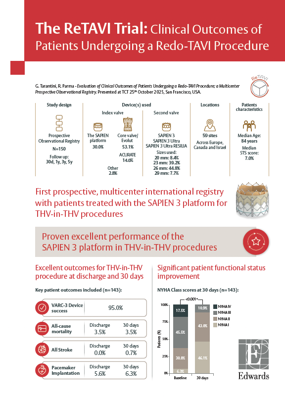 G. Tarantini, R. Parma - Evaluation of Clinical Outcomes of Patients Undergoing a Redo-TAVI Procedure; a Multicenter Prospective Observational Registry. Presented at TCT 25th of October 2025, San Francisco, USA.